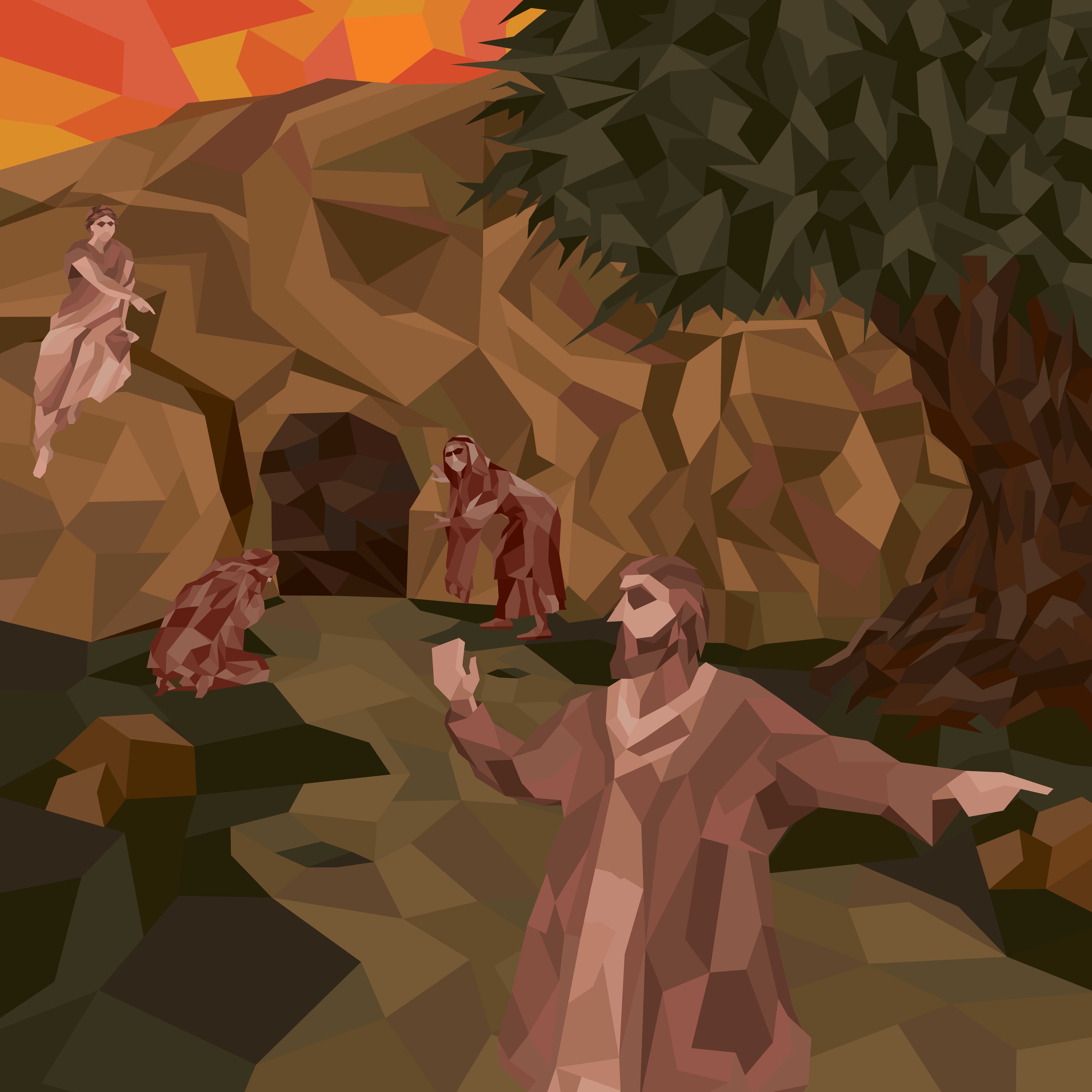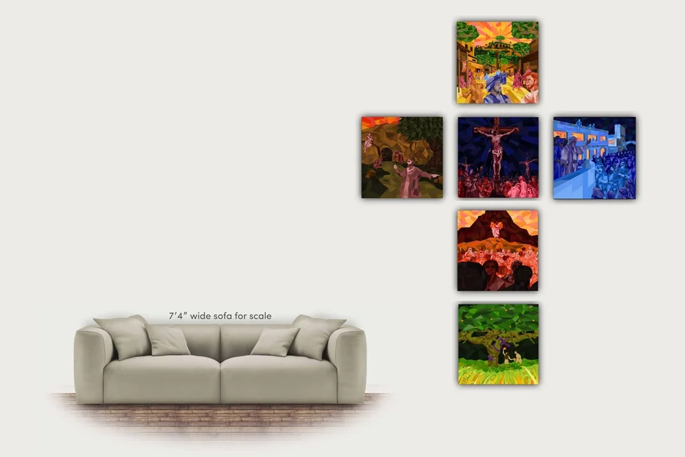 I love helping people understand the Bible and God, usually that happens verbally, through conversation and discussion. However, I wanted to help people understand visually; to look at the story of the Bible in a way they haven't before. To do this I created a series titled “The Gospel Story”, 6 pieces telling the narrative of the Bible using my own visual language/style.